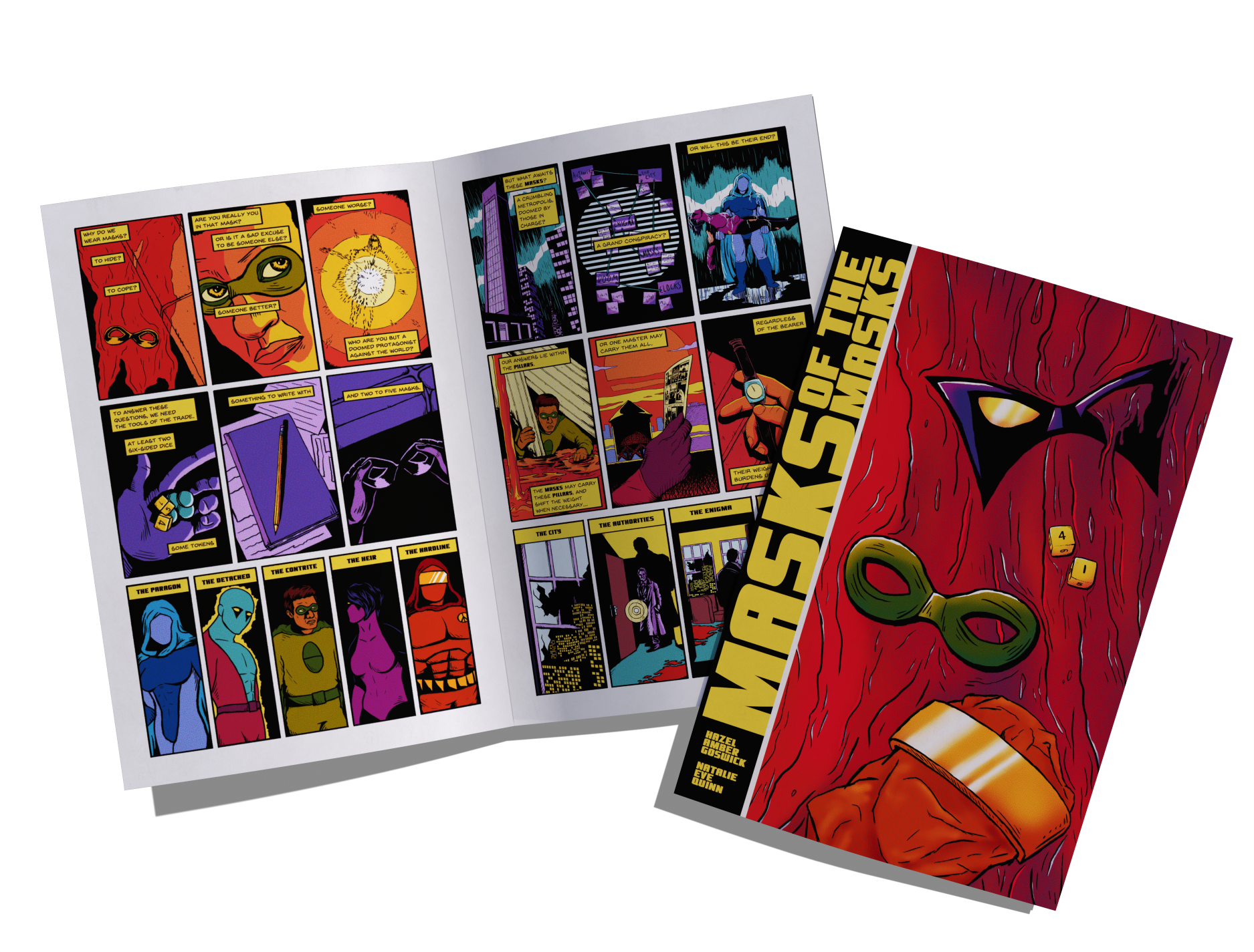 MASKS OF THE MASKS is a comic book that pairs imagery and scenes with game mechanics and prose.