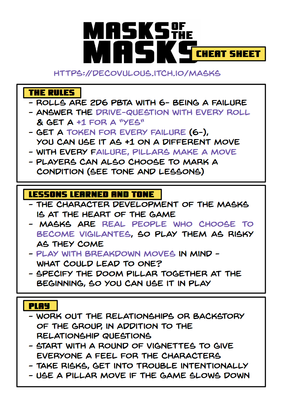 MASKS OF THE MASKS is a GMless PbtA game that explores how violence affects the lives of supposed heroes.